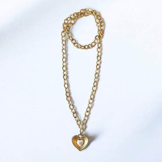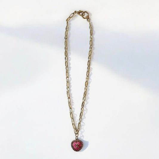 Red Heart Logo Gold Chain Necklace Up-Cycled and Repurposed